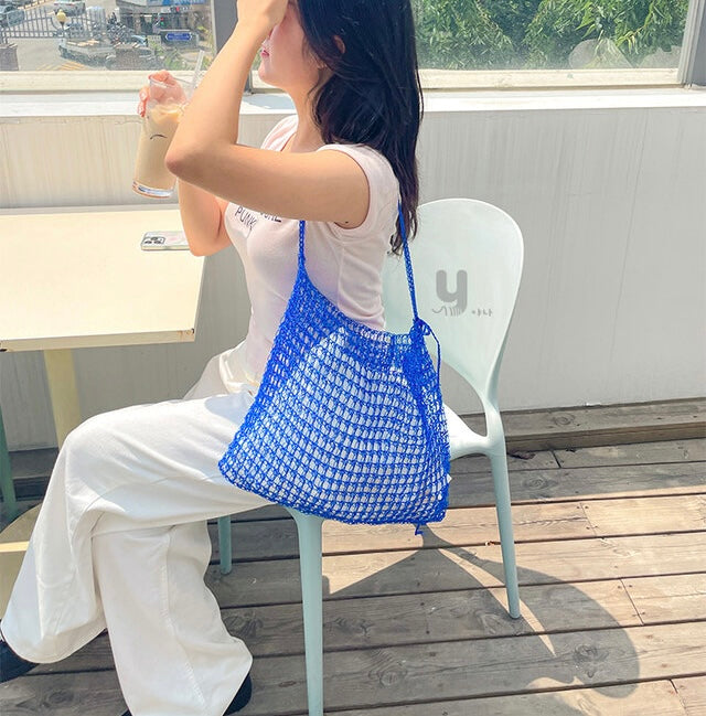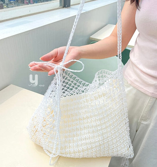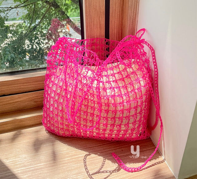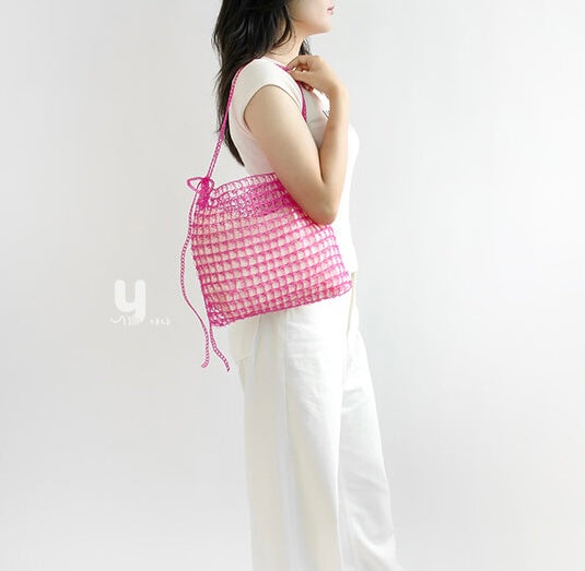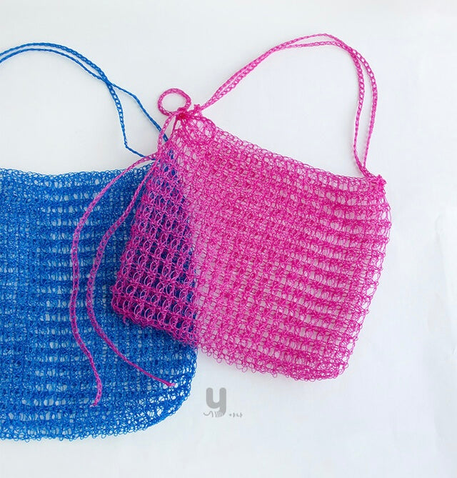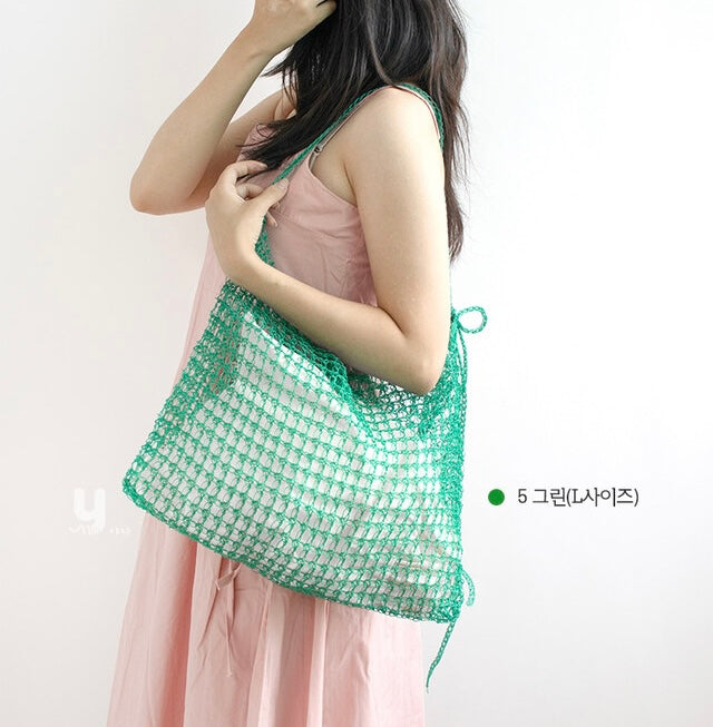◎バッグを1つ編むのにメタリックプレーコード2玉が