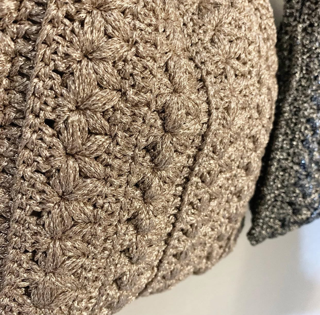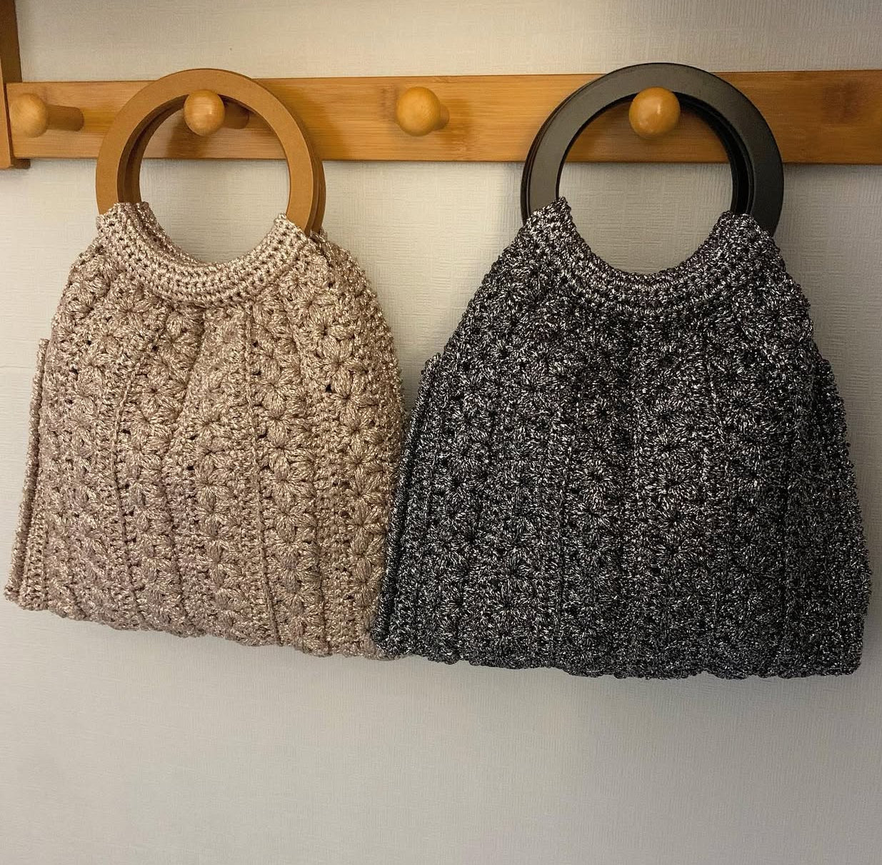 テンションを強めに編むとカチッとなります。